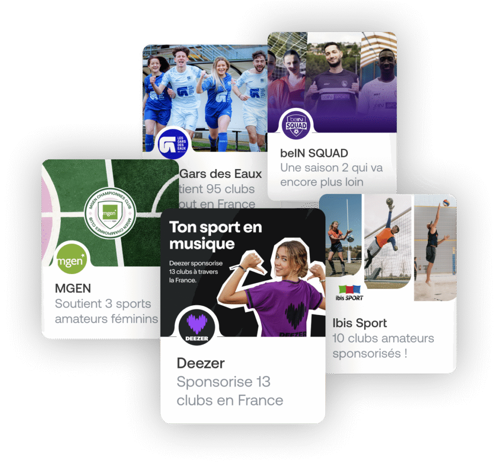 Profitez d’un moyen d’incarner réellement vos valeurs et vos engagements en aidant celles et ceux qui font le sport au quotidien. Notre écosystème média composé de notre application, nos réseaux sociaux, nos clubs ambassadeurs répartis dans toute la France et nos créateurs de contenus partenaires nous permettent d’ancrer puissamment les marques au coeur des clubs amateurs.